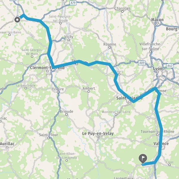 Prendre à droite et rejoindre A89 E70. Continuer sur 84 kilomètres