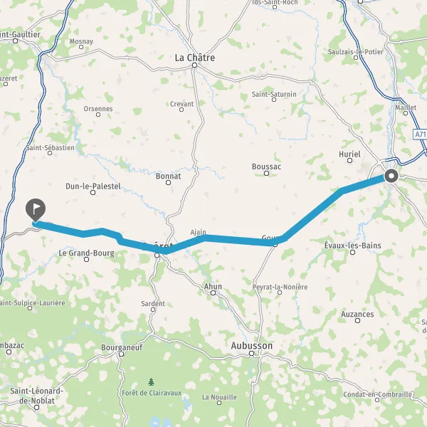Tourner à droite sur D951 (Route de Dun-le-Palestel) et continuer sur 65 mètres