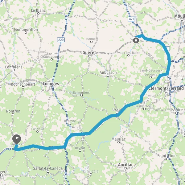 Prendre à droite et rejoindre A71. Continuer sur 69 kilomètres