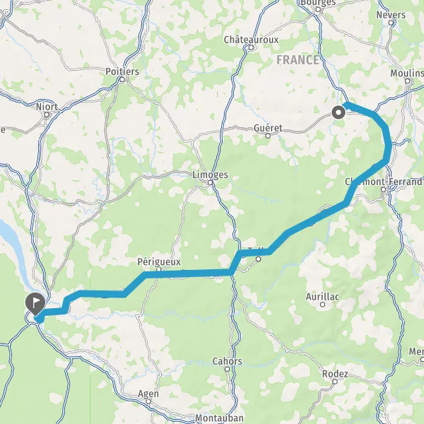 Prendre à droite et rejoindre N145 E62 (Route Centre-Europe Atlantique). Continuer sur 99 kilomètres
