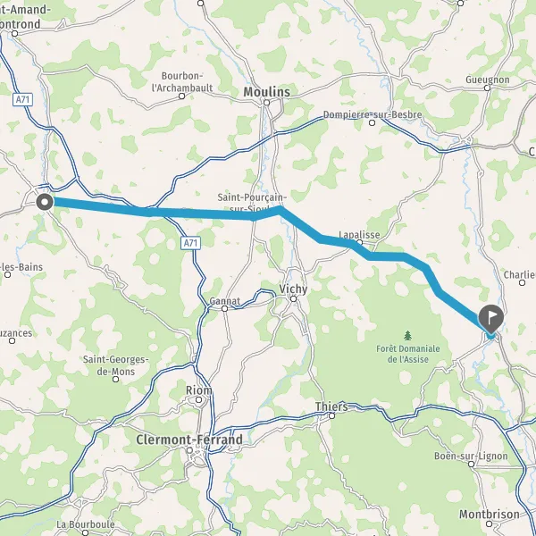A71MoulinsVichyRoanneSaint-Pourçain-sur-SiouleMontaigu-le-BlinSaint-Eloy-les-Mines