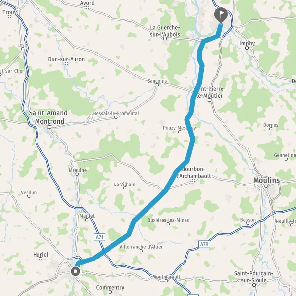 Tourner à gauche sur D135 (Route de Franchesse) et continuer sur 12 kilomètres