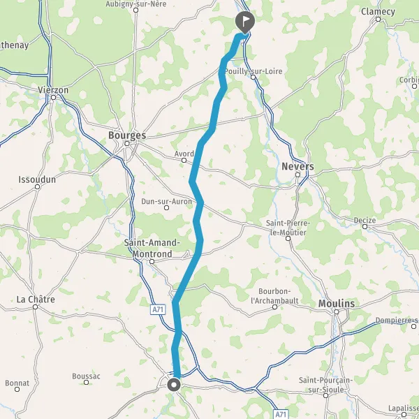 Tourner légèrement à droite sur D10 (Rue de Chaumoux) et continuer sur 8,3 kilomètres