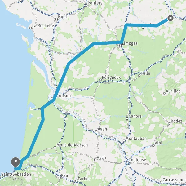 Prendre à droite et rejoindre A63. Continuer sur 183 kilomètres