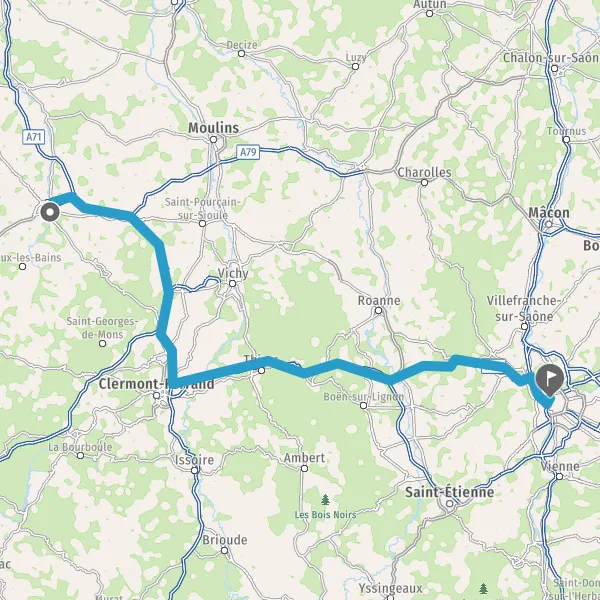 Avec le mode voiture, vous pouvez configurer vos options (type de véhicule, autoroute ou non, péage ou non, distance la plus courte), tout en ayant accès aux infos de circulation grâce à notre service d'info-trafic en temps réel. Ainsi faites des économies sur le coût ou la durée de votre voyage, en trouvant le trajet Montluçon Lyon adapté à vos besoins.