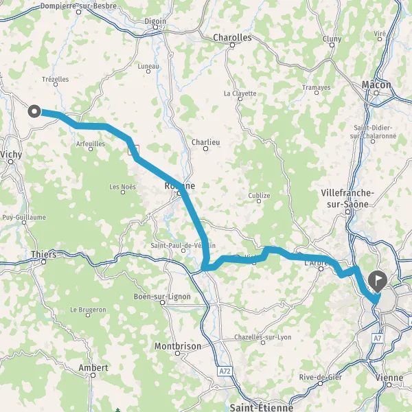 Avec le mode voiture, vous pouvez configurer vos options (type de véhicule, autoroute ou non, péage ou non, distance la plus courte), tout en ayant accès aux infos de circulation grâce à notre service d'info-trafic en temps réel. Ainsi faites des économies sur le coût ou la durée de votre voyage, en trouvant le trajet Saint-Gérand-le-Puy Lyon adapté à vos besoins.