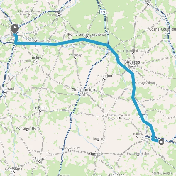 Prendre à droite et rejoindre A71. Continuer sur 37 kilomètres