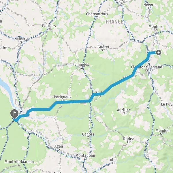 Prendre à droite et rejoindre A89 E70. Continuer sur 160 kilomètres
