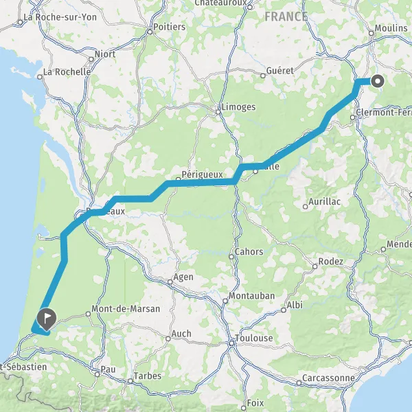 Prendre à droite et rejoindre A63. Continuer sur 139 kilomètres