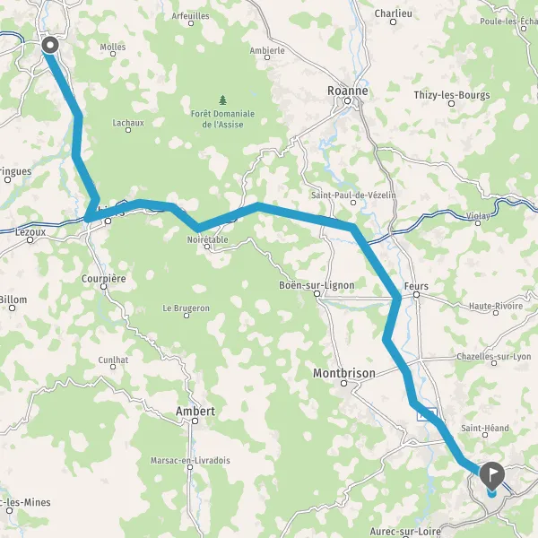 Prendre à droite et rejoindre A89 E70. Continuer sur 55 kilomètres