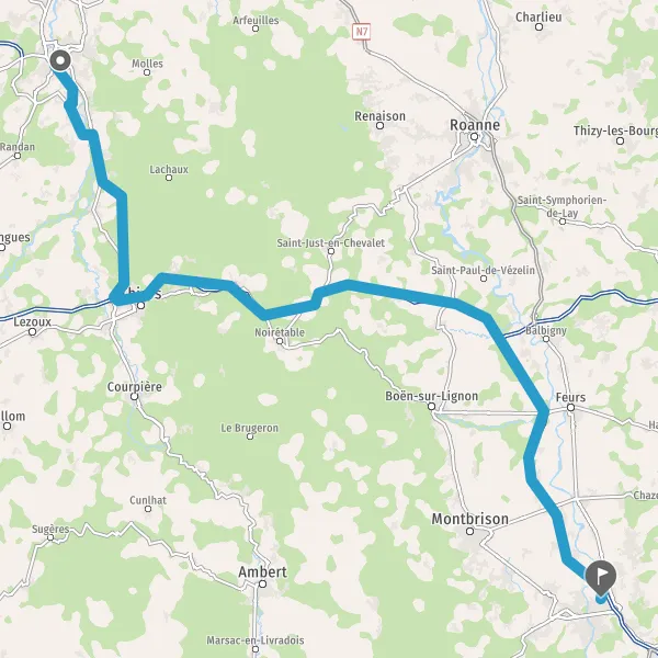 Prendre à droite et rejoindre A89 E70. Continuer sur 55 kilomètres