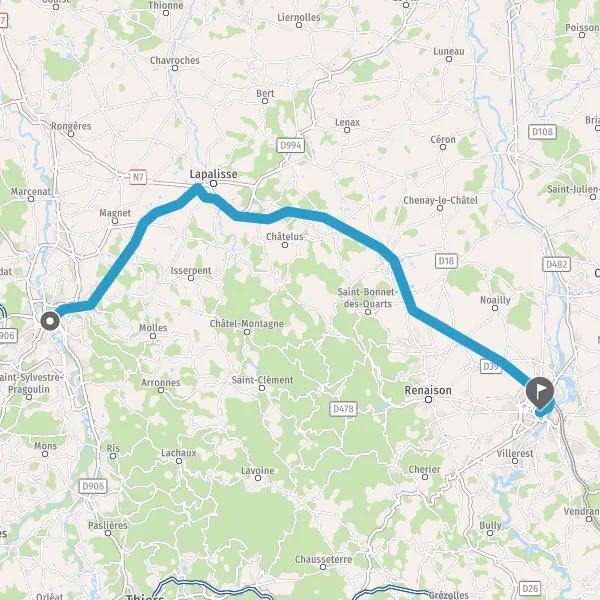 Tourner légèrement à gauche sur D906b (Route de Lapalisse) et continuer sur 10 kilomètres