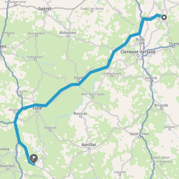 Prendre à droite et rejoindre A89 E70. Continuer sur 160 kilomètres