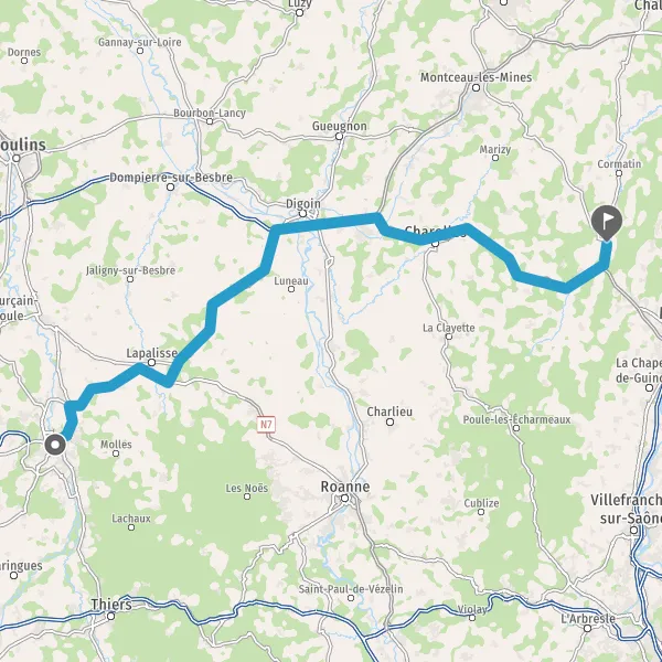 Tourner légèrement à gauche sur D906b (Route de Lapalisse) et continuer sur 10 kilomètres