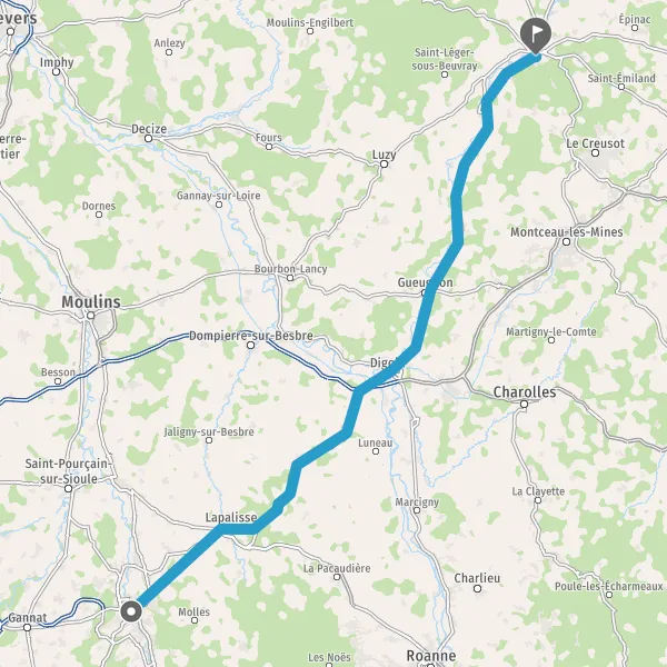 Tourner à gauche sur D906b (Route de Lapalisse) et continuer sur 7,8 kilomètres