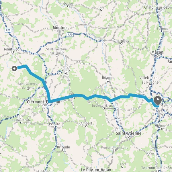 Avec le mode voiture, vous pouvez configurer vos options (type de véhicule, autoroute ou non, péage ou non, distance la plus courte), tout en ayant accès aux infos de circulation grâce à notre service d'info-trafic en temps réel. Ainsi faites des économies sur le coût ou la durée de votre voyage, en trouvant le trajet Marcillat-en-Combraille Lyon adapté à vos besoins.