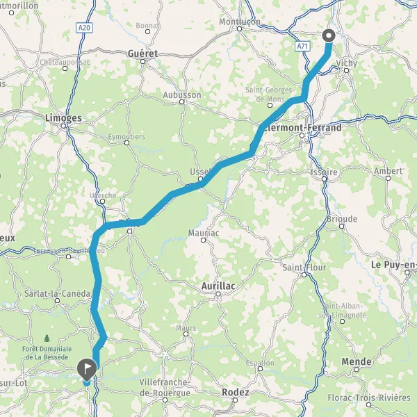 Prendre à droite et rejoindre A71. Continuer sur 14 kilomètres