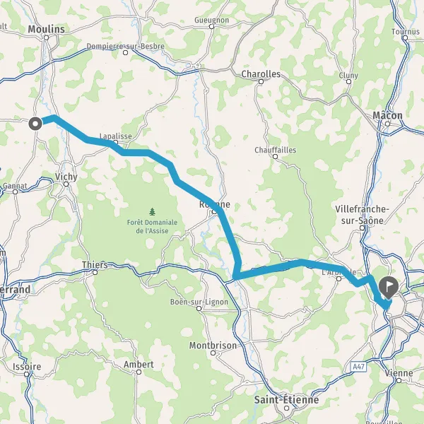 Avec le mode voiture, vous pouvez configurer vos options (type de véhicule, autoroute ou non, péage ou non, distance la plus courte), tout en ayant accès aux infos de circulation grâce à notre service d'info-trafic en temps réel. Ainsi faites des économies sur le coût ou la durée de votre voyage, en trouvant le trajet Saint-Pourçain-sur-Sioule Lyon adapté à vos besoins.