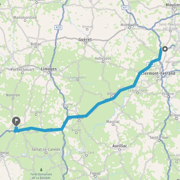 Prendre à droite et rejoindre A71. Continuer sur 14 kilomètres