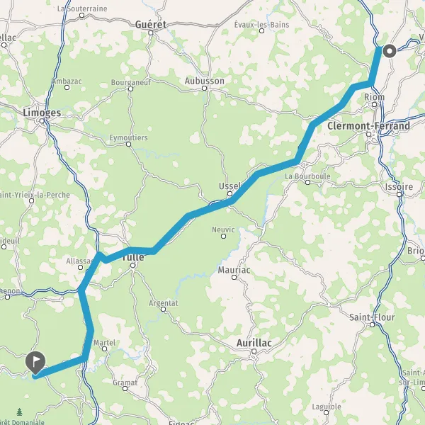 Prendre à droite et rejoindre A89 E70. Continuer sur 160 kilomètres