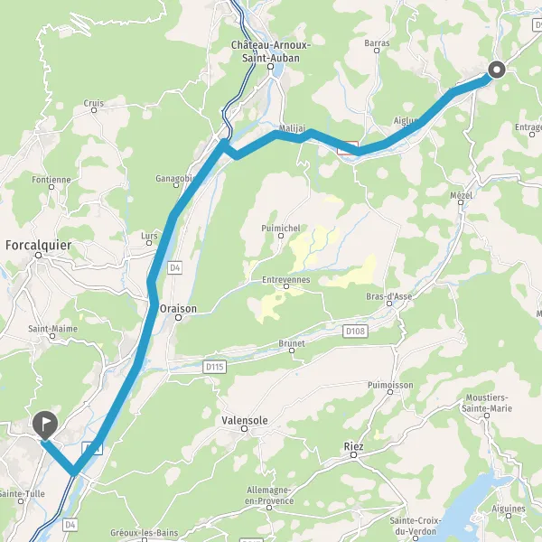 Tourner légèrement à droite sur D4 (Route d'Oraison) et continuer sur 6,2 kilomètres