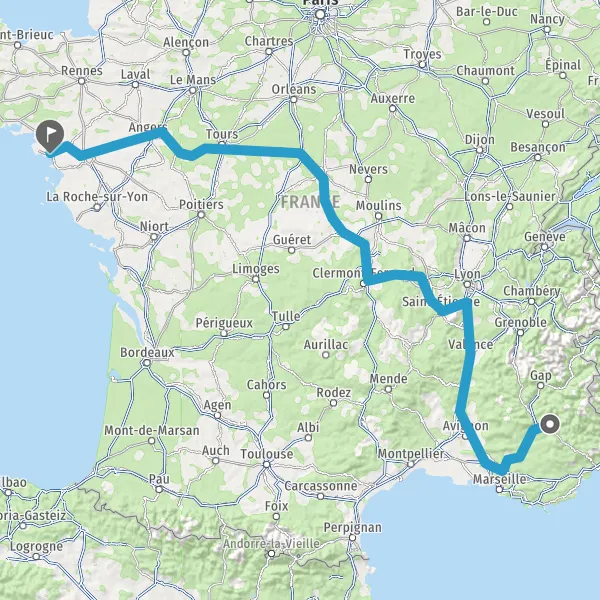 Prendre à droite et rejoindre A85 E604. Continuer sur 205 kilomètres