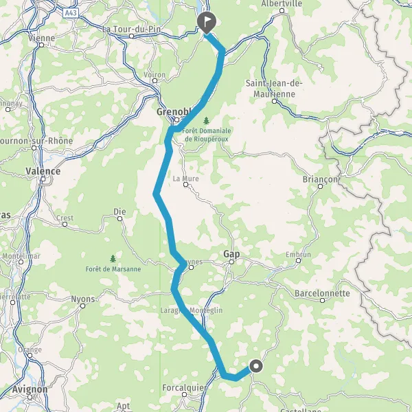 Continuer D1075 E712 (Route de Grenoble) sur 17 kilomètres