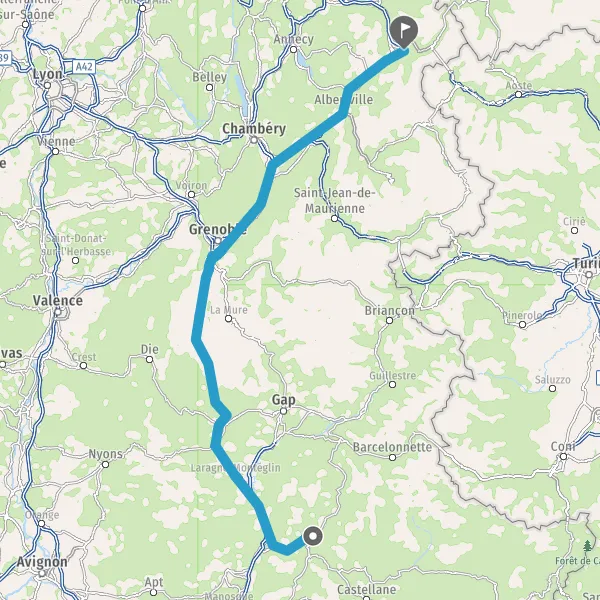 Continuer D1075 E712 (Route de Grenoble) sur 17 kilomètres