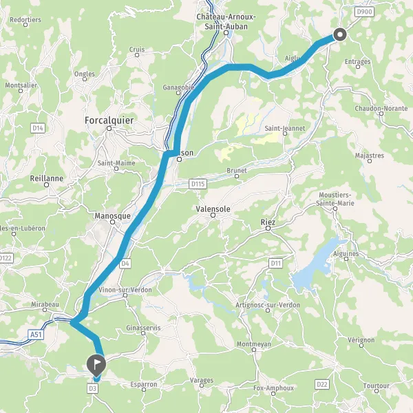 Tourner légèrement à droite sur D4 (Route d'Oraison) et continuer sur 6,2 kilomètres