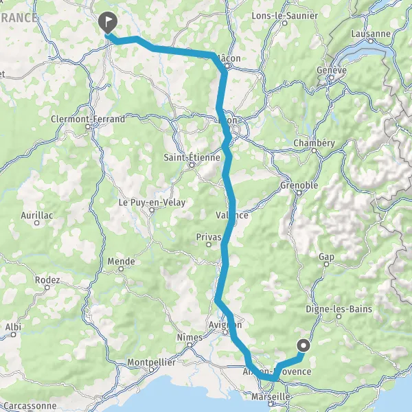 Prendre à droite et rejoindre A51 E712. Continuer sur 50 kilomètres