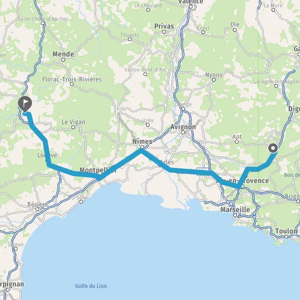 Prendre à droite et rejoindre A51 E712. Continuer sur 50 kilomètres