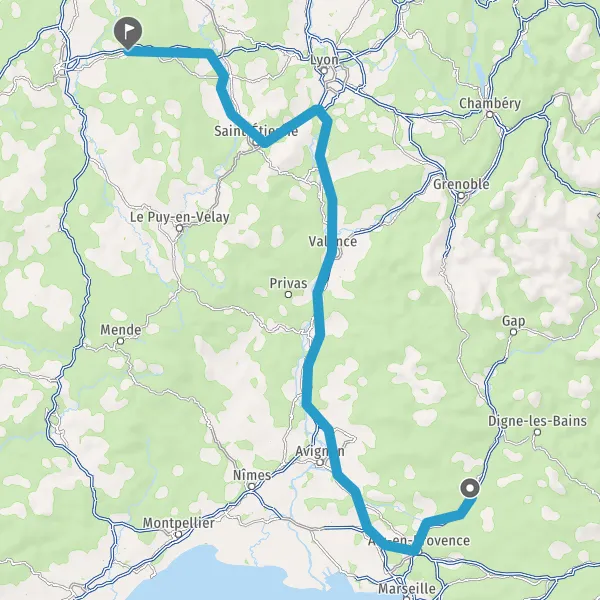 Prendre à droite et rejoindre A51 E712. Continuer sur 50 kilomètres