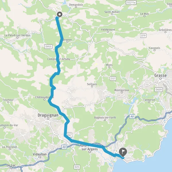 Au rond-point, prendre la 3ème sortie sur DN7 (Route de Fréjus) et continuer sur 4,6 kilomètres