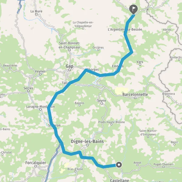Tourner à droite sur N85 (Route de Digne) et continuer sur 18 kilomètres