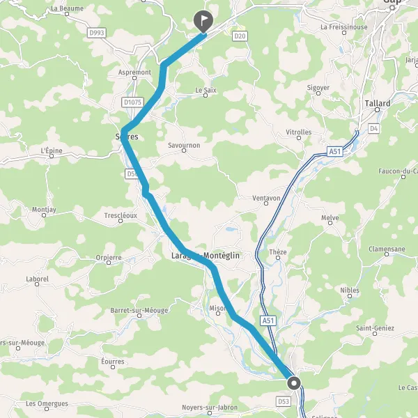 Au rond-point, prendre la 1ère sortie sur D994 (Route de Gap) et continuer sur 8,7 kilomètres