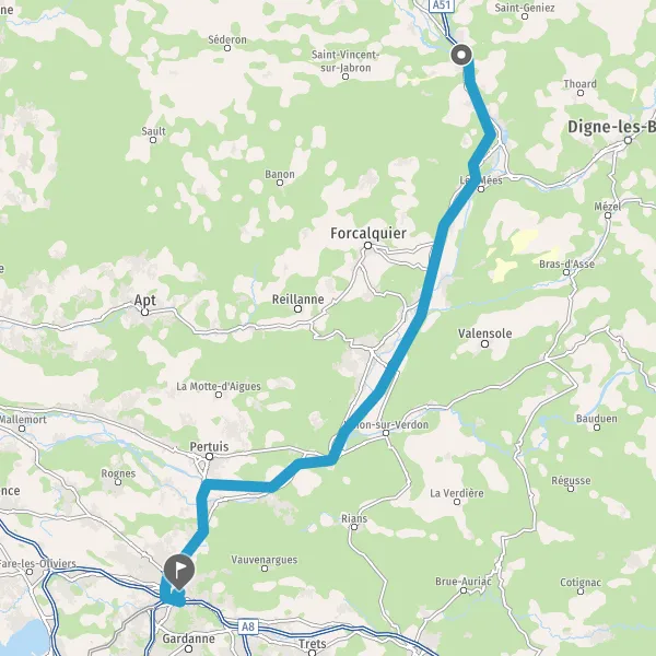 Avec le mode voiture, vous pouvez configurer vos options (type de véhicule, autoroute ou non, péage ou non, distance la plus courte), tout en ayant accès aux infos de circulation grâce à notre service d'info-trafic en temps réel. Ainsi faites des économies sur le coût ou la durée de votre voyage, en trouvant le trajet Sisteron Aix-en-Provence adapté à vos besoins.