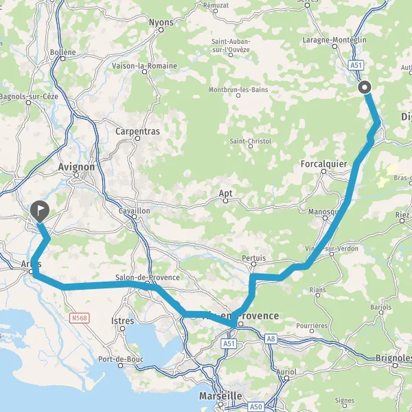 Tourner légèrement à droite sur A51 E712 et continuer sur 95 kilomètres