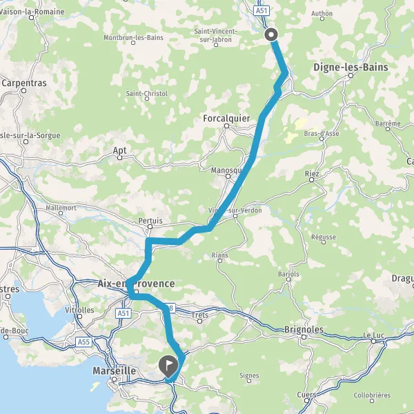 Tourner légèrement à droite sur A51 E712 et continuer sur 95 kilomètres