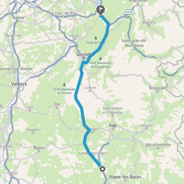 Continuer D1075 E712 (Route de Grenoble) sur 17 kilomètres