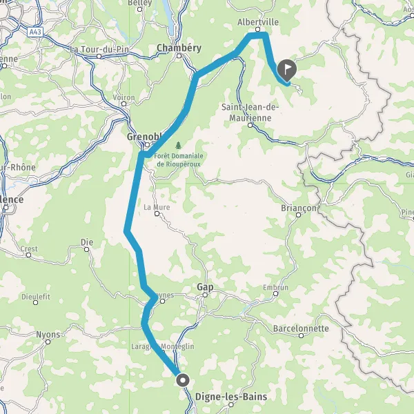Continuer D1075 E712 (Route de Grenoble) sur 17 kilomètres