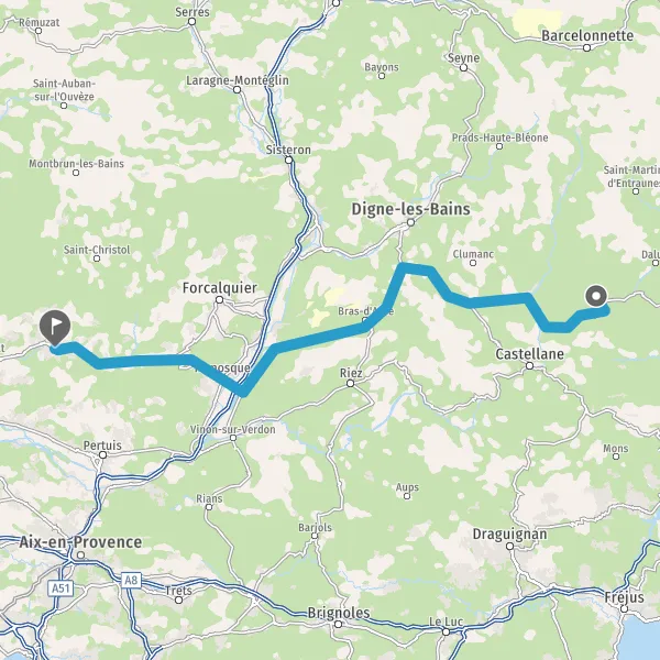 Tourner à droite sur N85 (Route de Digne) et continuer sur 18 kilomètres