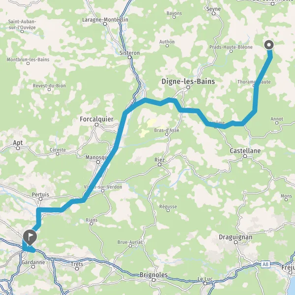 Tourner à droite sur N85 (Route de Digne) et continuer sur 18 kilomètres