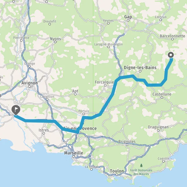 Tourner à droite sur N85 (Route de Digne) et continuer sur 18 kilomètres