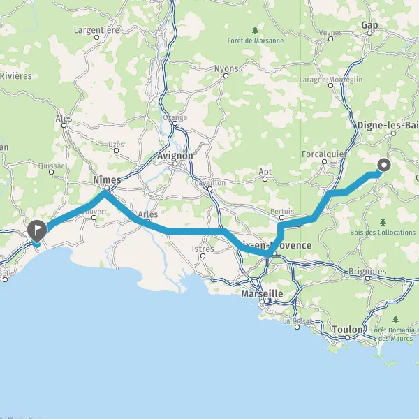 Tourner à droite sur D6 (Route de Manosque) et continuer sur 14 kilomètres
