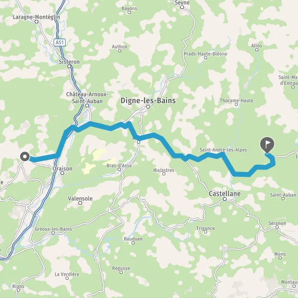 Au rond-point, prendre la 4ème sortie sur D12 (Route de Digne) et continuer sur 19 kilomètres