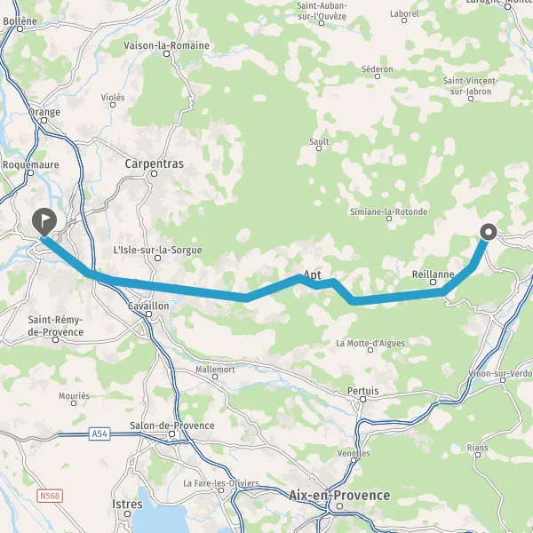 Au rond-point, prendre la 2ème sortie sur D4100 (Route d'Apt) et continuer sur 18 kilomètres