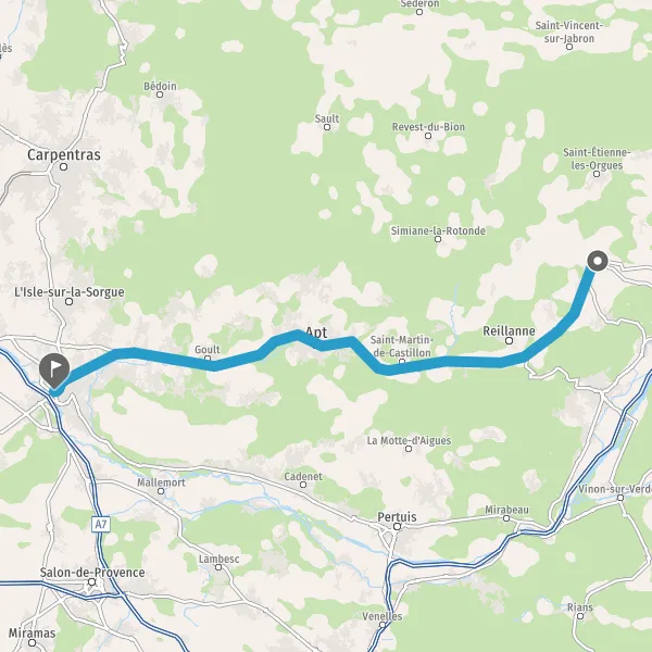 Au rond-point, prendre la 2ème sortie sur D4100 (Route d'Apt) et continuer sur 18 kilomètres