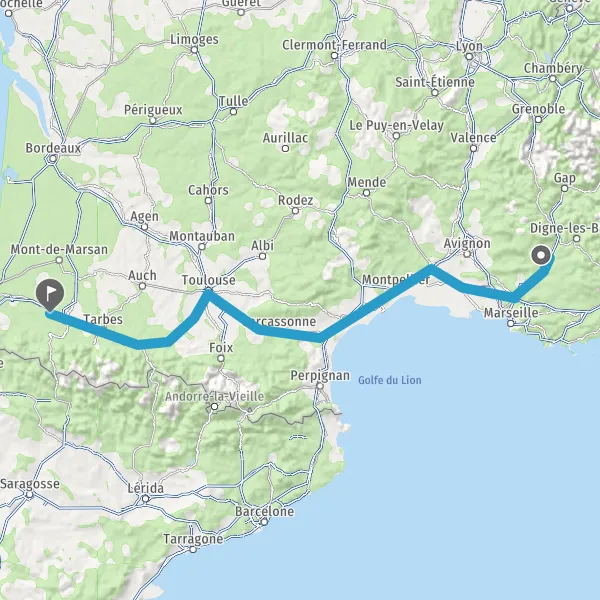 Prendre à droite et rejoindre A61. Continuer sur 136 kilomètres