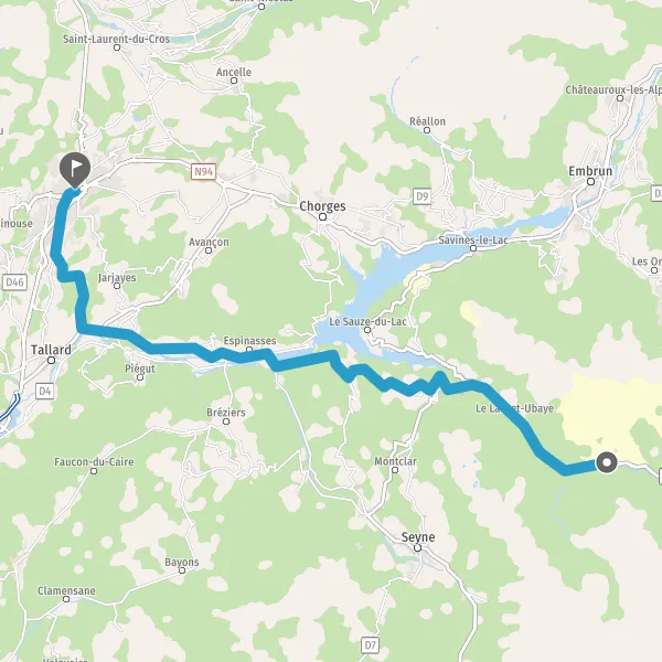 Au rond-point, prendre la 2ème sortie sur D900b (Route de Barcelonnette) et continuer sur 4,8 kilomètres