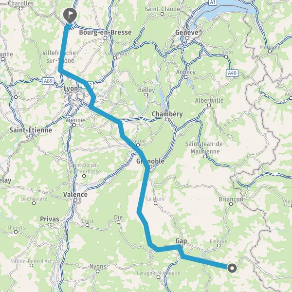 Continuer D1075 E712 (Route de Grenoble) sur 17 kilomètres
